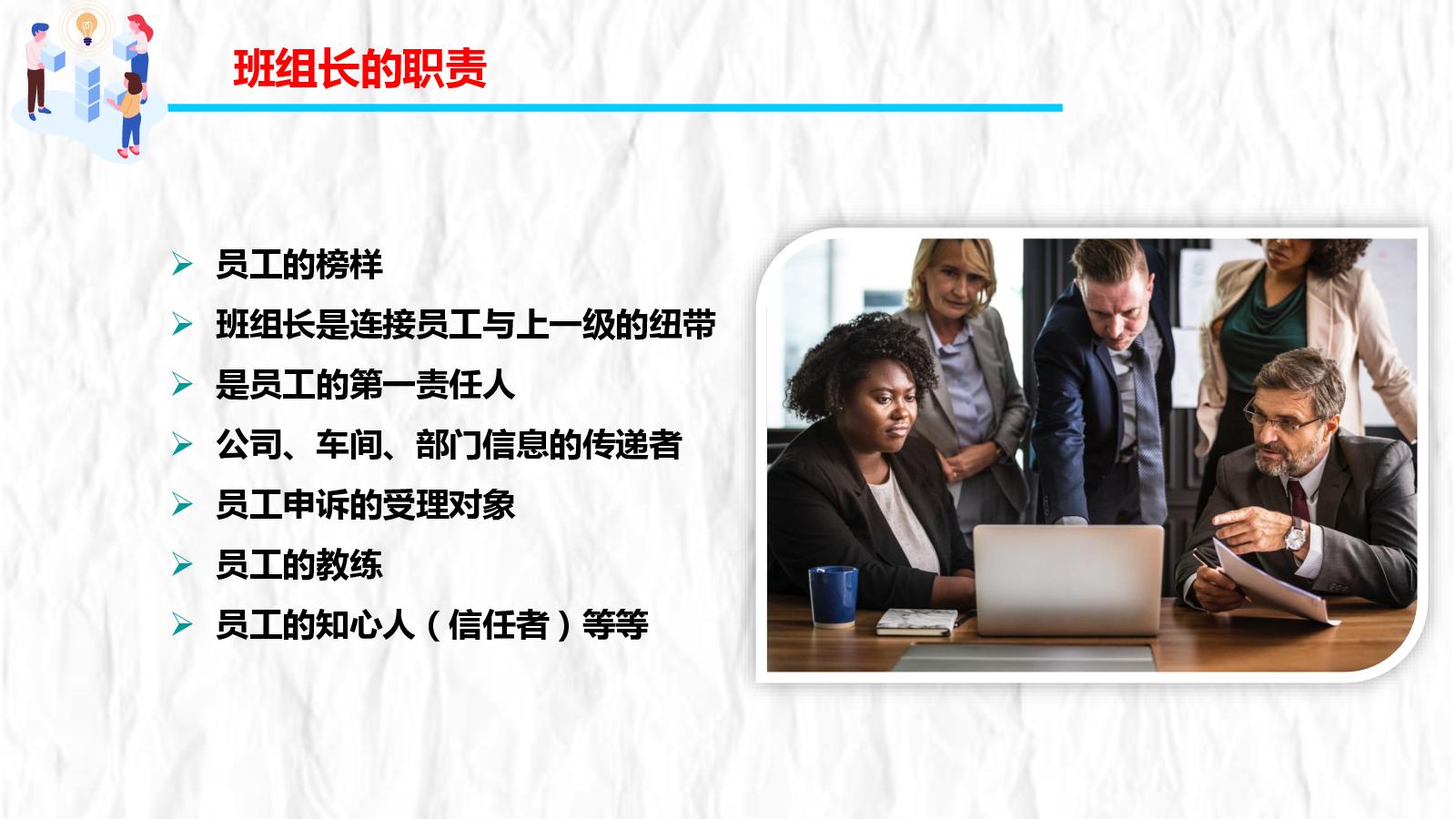 班组是一家公司最基层的执行单位,班组长则是其最基层的执行长官——班头。 一旦从作业岗位走到组长岗位就意味着要承担一些管理职能,承担与作业岗位不同性质的责任。